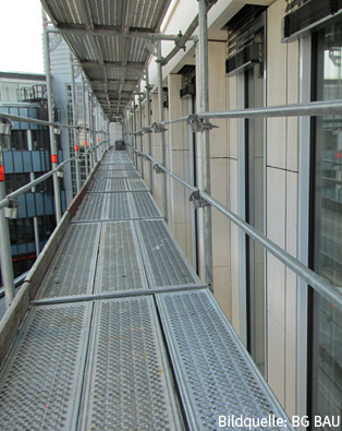 Liegt der Gerüstbelag mehr als cm von der Gebäudefassade entfernt, muss auch nach innen ein Seitenschutz als Absturzsicherung vorhanden sein.